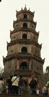 Further down the river was the Thien Mieu Pagoda, constructed beginning in 1601. It is often called the symbol of Hue and is one of the oldest & loveliest religious structures in Vietnam. Each of its 7 tiers is dedicated to one of the human forms taken by Buddha or the 7 steps to enlightenment.